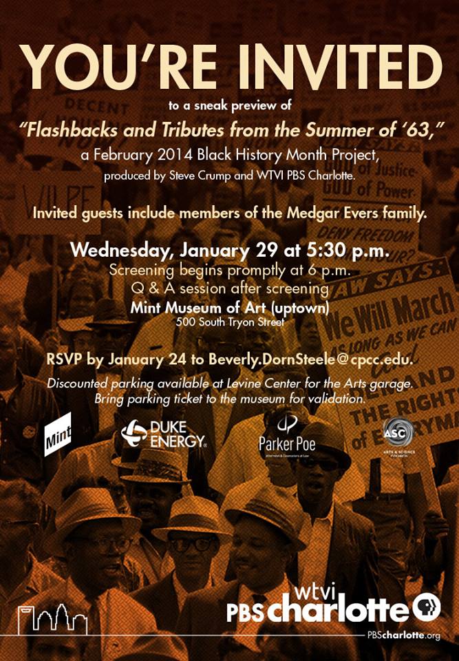 Update: The event has been moved to the Gantt Center beginning with a 4:30 p.m reception. Both Merlie Evers and daughter Rena will be in attendance. Journalist Steve Crump traces one of the most important years of the Civil Rights Movement in his new documentary “Flashbacks and Tributes From ’63.” Crump and WTVI PBS Charlotte […]